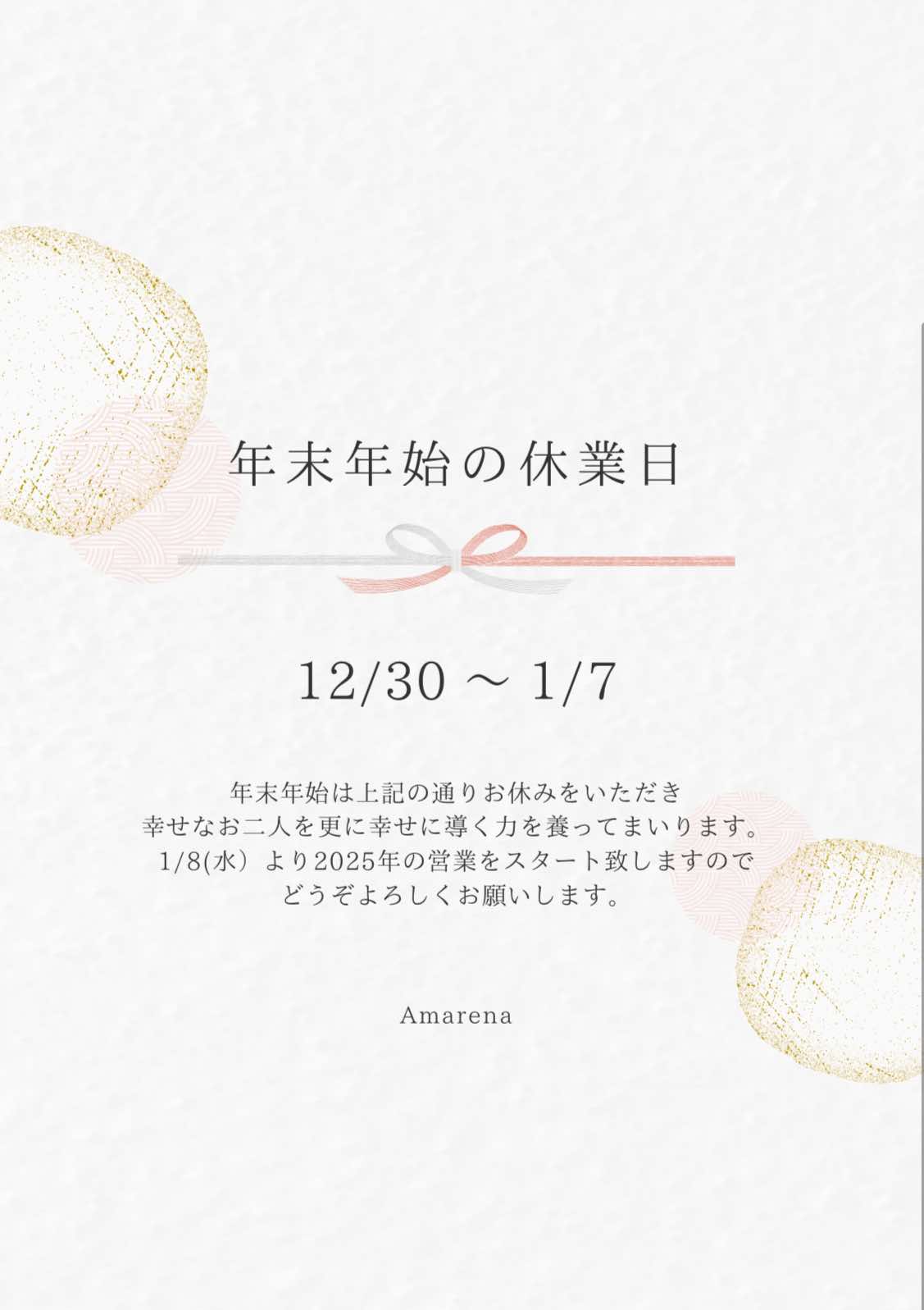 年末年始休業をいただきます。
